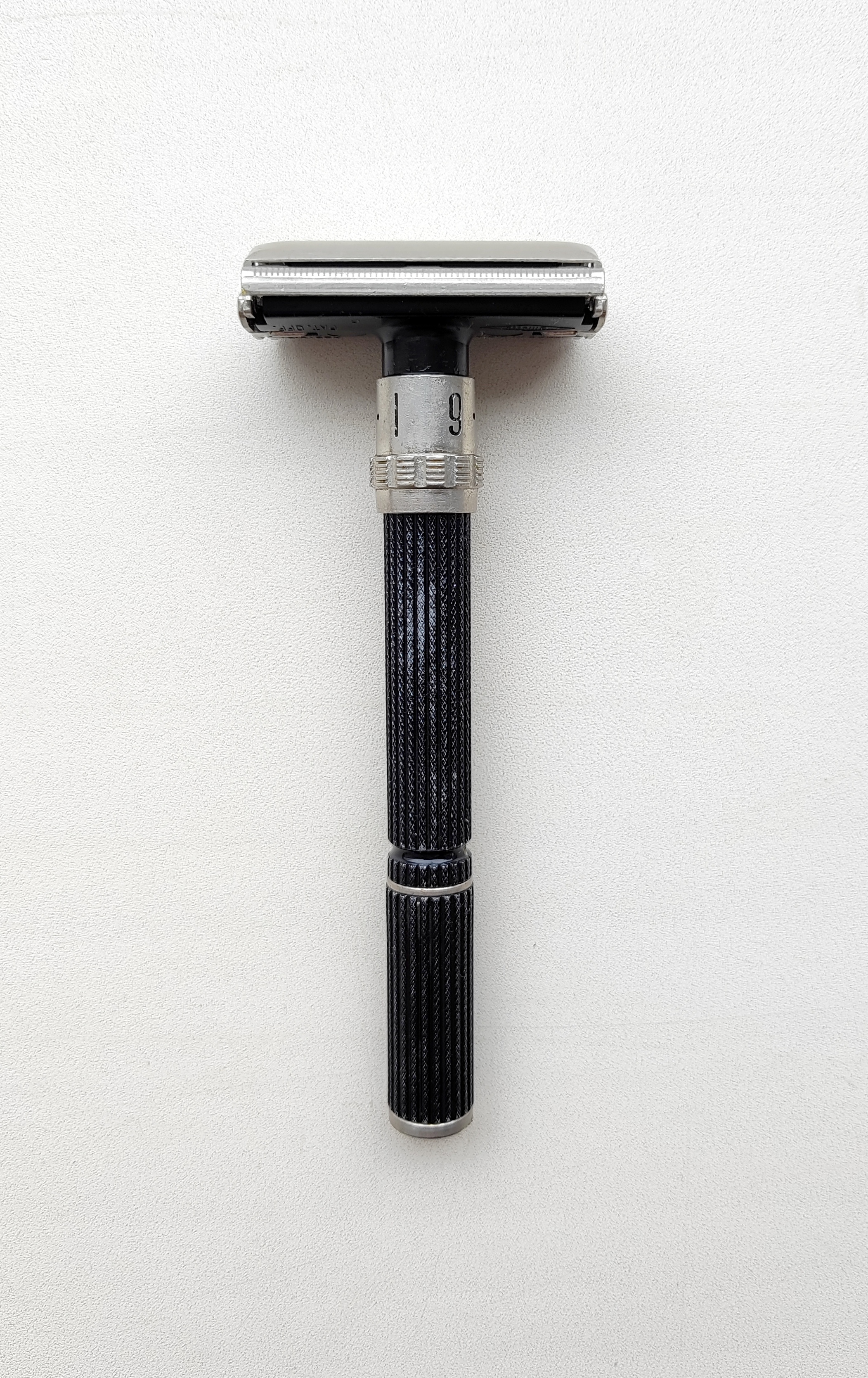 2. Безопасная бритва регулируемая (т-образный станок для бритья) Gillette Super Adjustable Black Beauty Model 84, США, код U-2 (1974 г). Станок регулируемый, от 1 до 9. Почищен внутри и снаружи, смазан, механика хорошая, работают все регулировки.