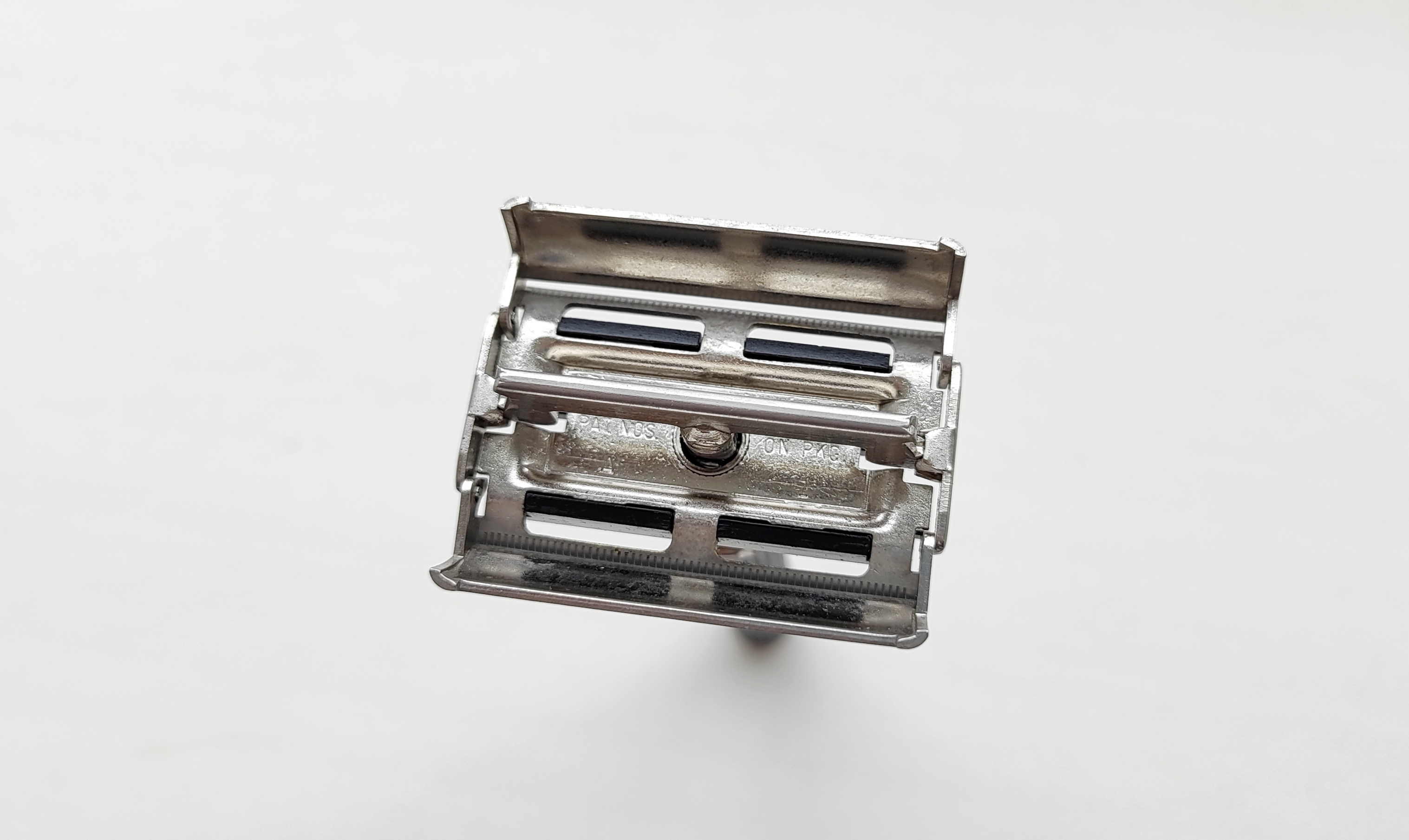 1. Безопасная бритва регулируемая (т-образный станок для бритья) Gillette Super Adjustable Black Beauty Model 84, США, код P-4 (1970 г). Станок регулируемый, от 1 до 9. Почищен внутри и снаружи, смазан, механика хорошая, работают все регулировки. Идеальные зазоры с каждой стороны в т. ч. относительно друг друга. Открытие створок совсем чуть не доходит до конца (лезвие ставится без проблем), см. фото в открытом виде. Есть несколько каверн и потертостей на ручке, так же местами виднеется латунь из-под покрытия, всё отражено на фото.
