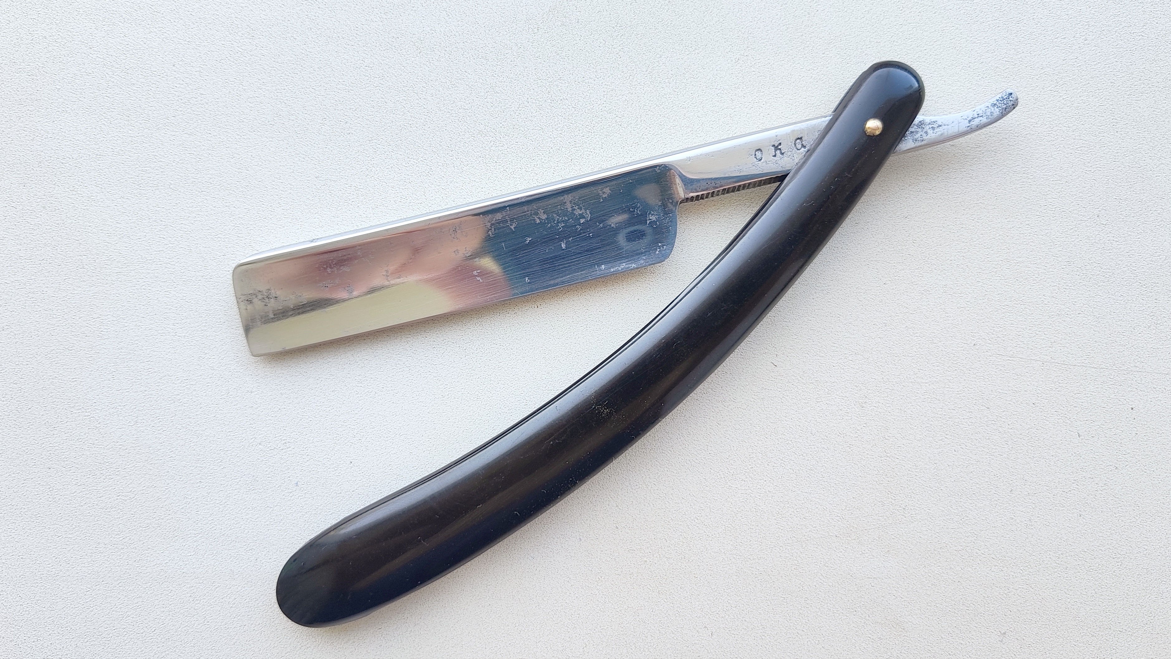 Опасная бритва Ока, завод ЗТВ (Вача), 1958 год. Ширина полотна 18 мм, все родное, без футляра. Бритва попала ко мне в коррозии, вручную почистил и заточил. Подготовлена мной к бритью. Модель из водной серии, куда еще входили Кама, Волга, Яхта. Качественная правильная сталь, отличная геометрия, клинок массивный и с минимальным износом. Хоть и остались следы коррозии на полотне, на бритьё они не повлияют, брить будет шикарно. Бритвы ЗТВ второй половины 50х почти всегда выделяются приличным качеством.
