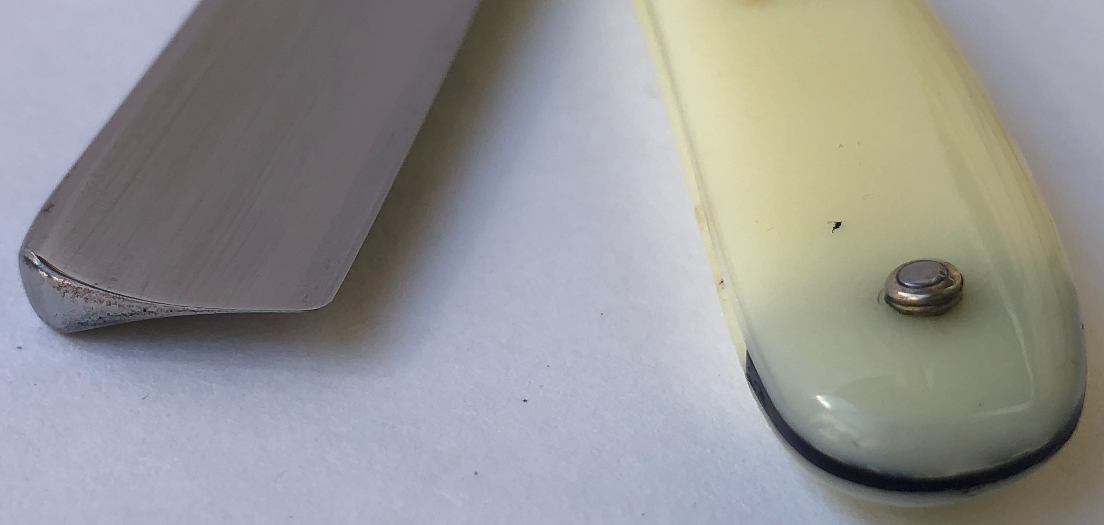 Стал и кромка чистые от разного рода видимых дефектов.Бритва заточена и лично протестирована. Отличное чистое и мягкое бритьё. Очень удобная форма лезвия и размер не только для новичка, но и отлично подойдёт для опытного пользователя. Прекрасный, старинный вариант в свою коллекцию, так что не пропустите 100-летнюю старушку!