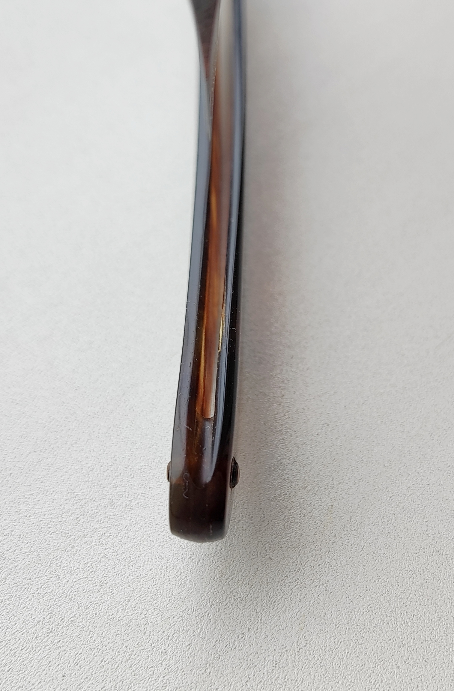 Опасная бритва Москва, завод СТИЗ, 1954 год. Когда то была гравюра на полотне (не знаю какая). Ширина полотна 14 мм у носа с расширением до 15.5 мм к пятке, все родное, без футляра. Ко мне попала со следами старого регринда, прошелся вручную наждачками, полиролью и подготовил к бритью. Остались некоторые остаточные следы от регринда, кромка чистая. Геометрия в порядке, сталь не перегрета, в рабочем плане вполне хороший был регринд. Маленькую трещинку у пина подклеил. Почётный 1954 год, качественная углеродистая сталь, красивая оправа под янтарь/древесину. Отличный вариант попробовать опасное бритье за недорого, когда нужны не шашечки, а просто ехать.