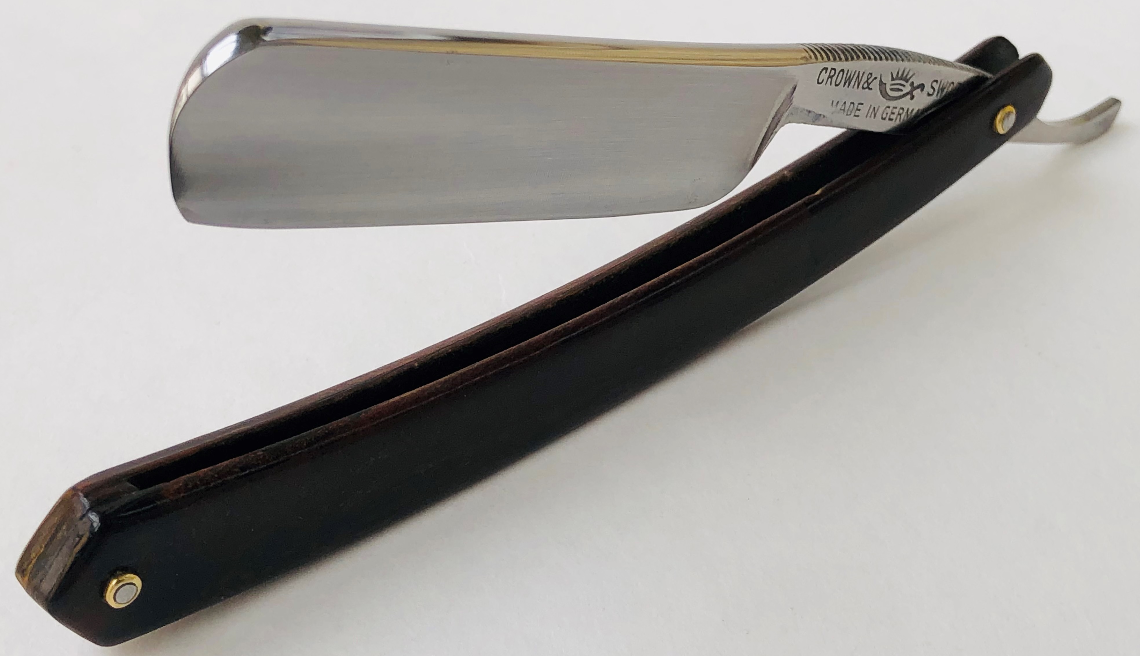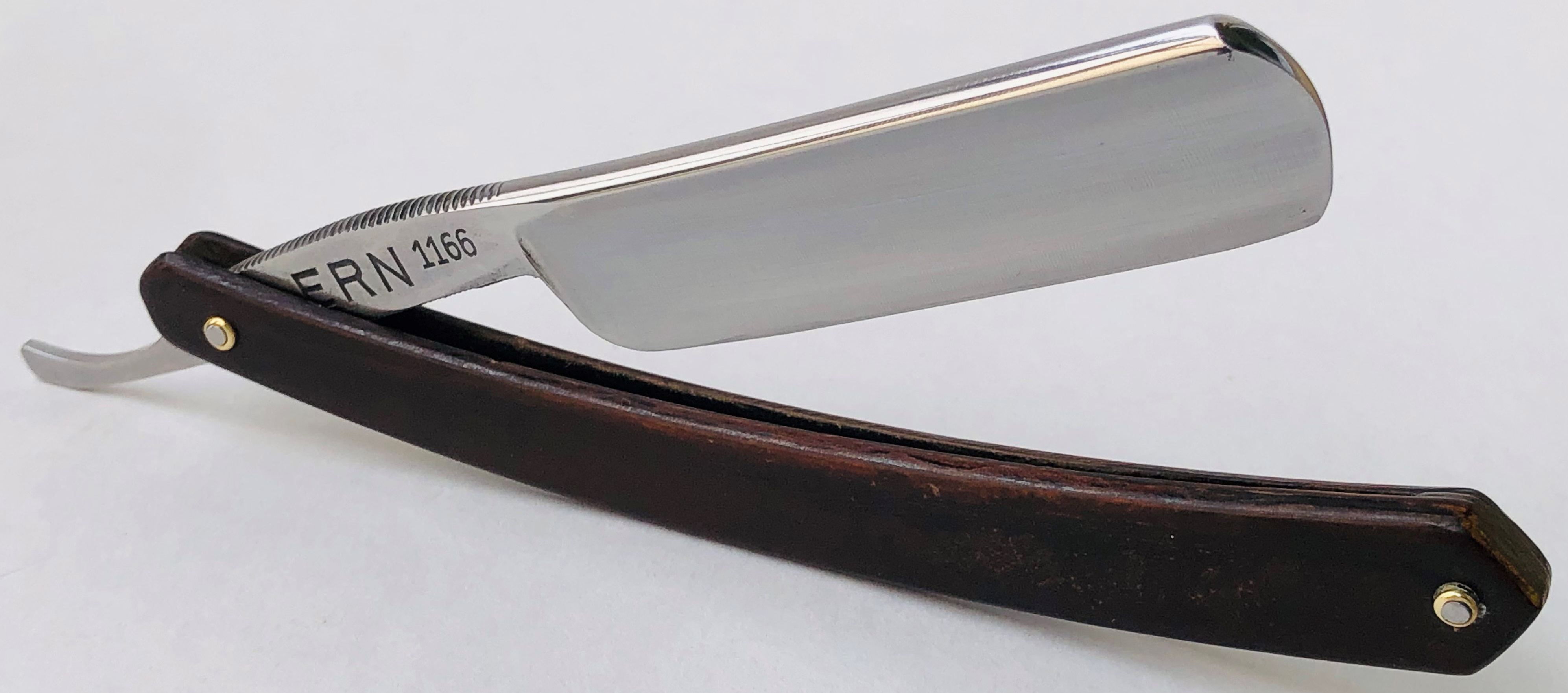 Не моя реставрация.Бритва находится в очень хорошем и малопользованном состоянии.Аккуратно была приведена в порядок со сборкой и разборкой и с оставлением патины на эрле.Идеальная геометрия полотна:кромочка равномерна по всей длине. Очень неплохой вариант для коллекции и бритья. Заточена и готова к бритью.
