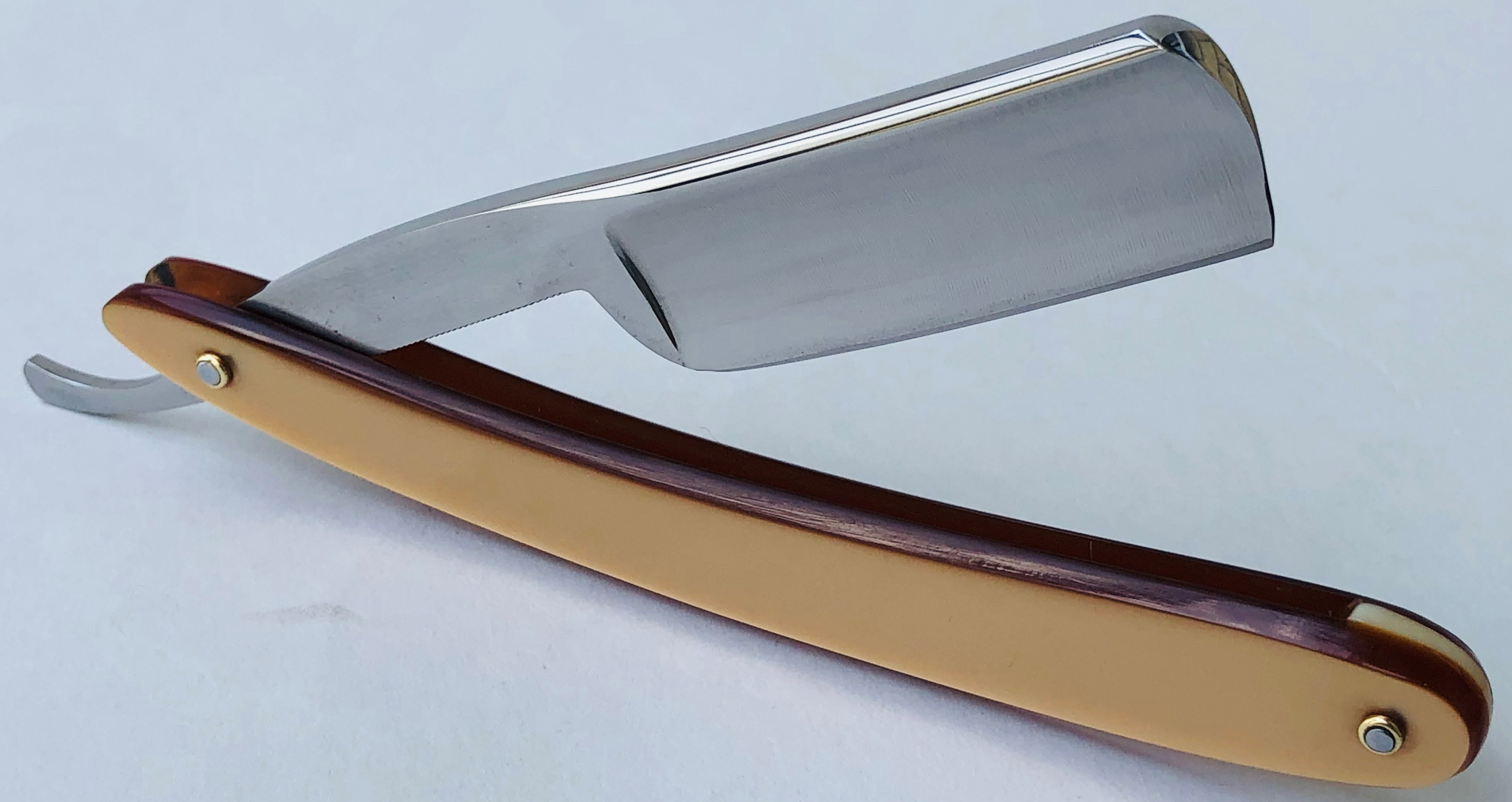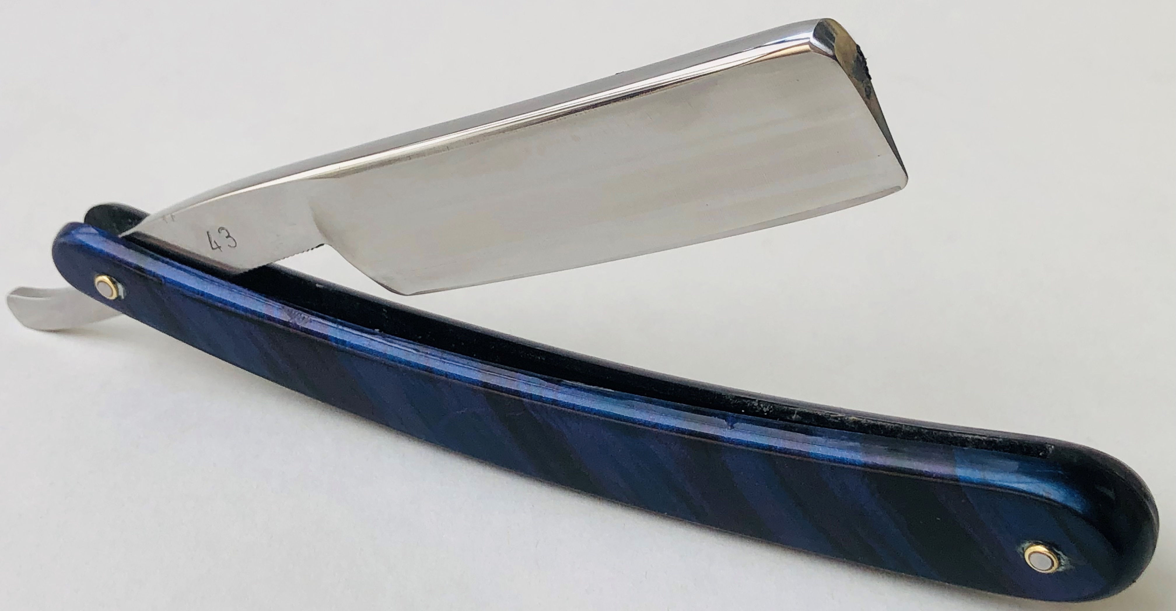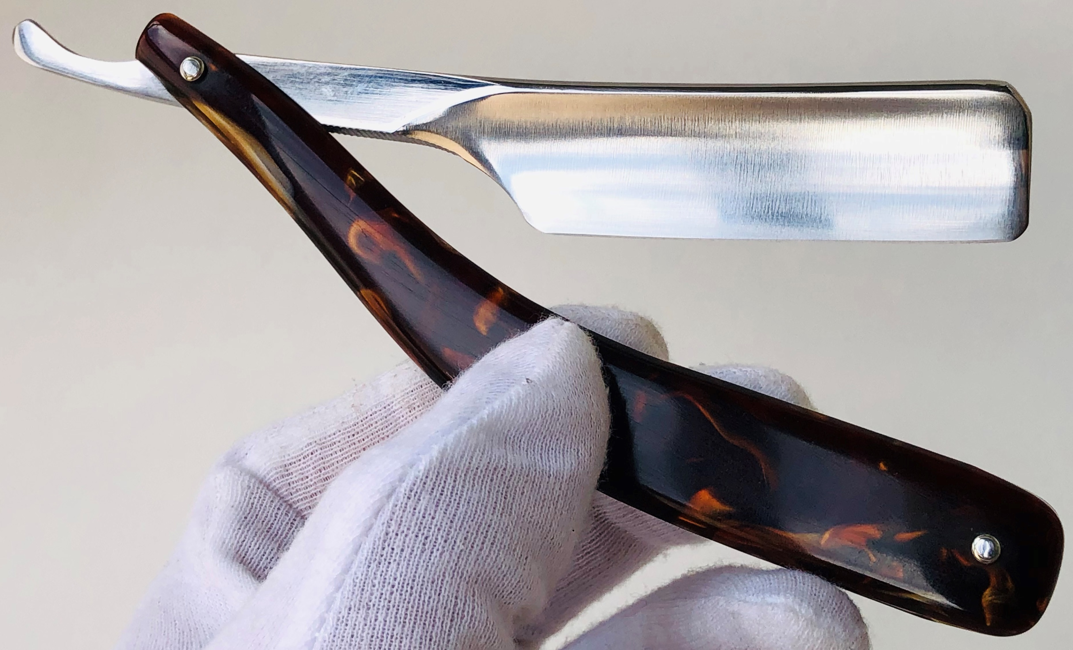 Бритва без активных следов пользования и находится в очень хорошем состоянии.Была разобрана, для минимальных, косметических работ,без регринда.Умеренная шлифовка и полировка. Родные пины удалось аккуратно разобрать и заново поставить,с добавлением внутренних шайб. Идеальная геометрия полотна:кромочка равномерна по всей длине.Тяжёлая.
