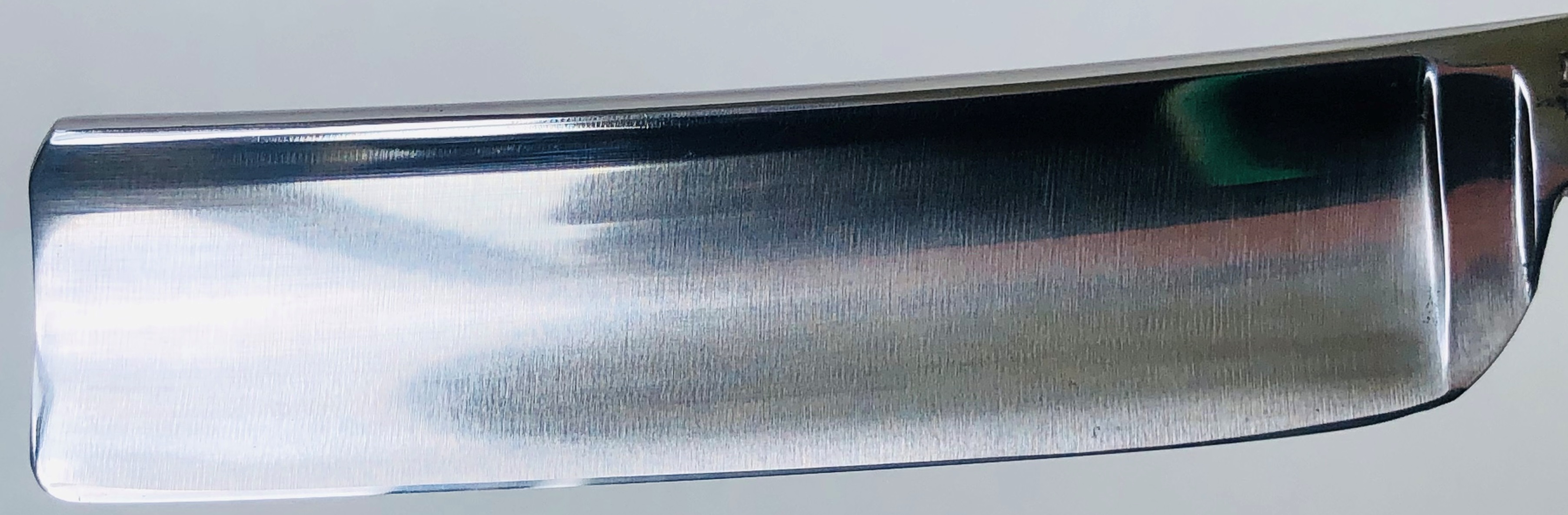 Бритва без активных следов пользования и находится в очень хорошем состоянии.Была разобрана, для минимальных, косметических работ,без регринда.Умеренная шлифовка и полировка. Родные пины удалось аккуратно разобрать и заново поставить,с добавлением внутренних шайб. Идеальная геометрия полотна:кромочка равномерна по всей длине.Тяжёлая.