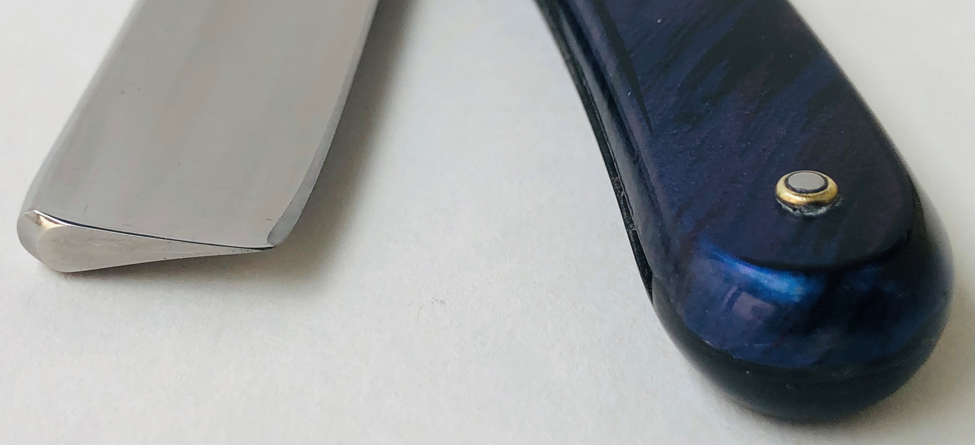 Разобрал, для удаления окисления в районе осевого пина и царапин на полотне.Минимальная шлифовка и полировка. Идеальная геометрия клинка:кромочка равномерна по всей длине.Заточена и готова к бритью.
