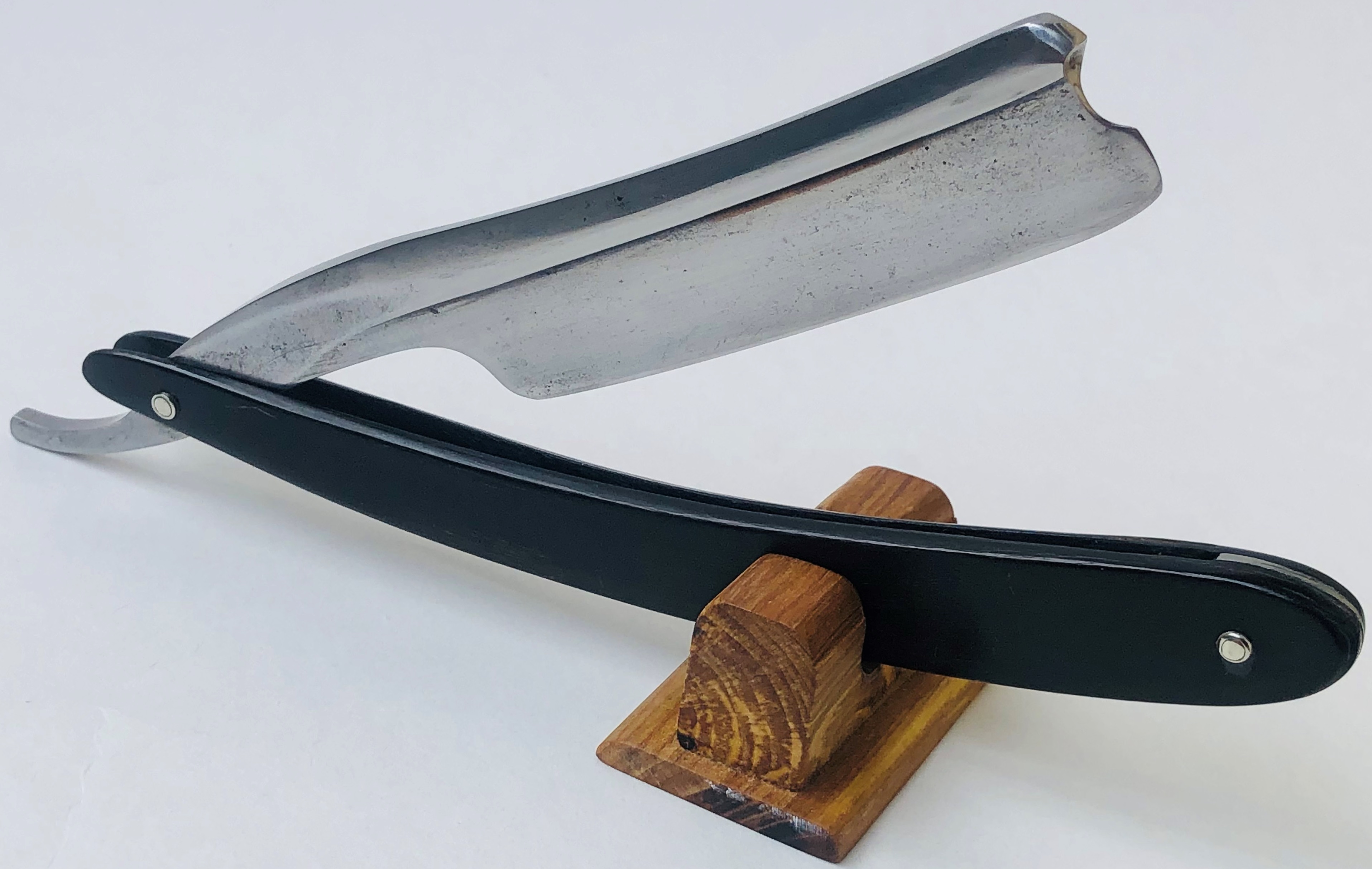 Не моя реставрация.Бритва находится в очень хорошем и малопользованном состоянии.Аккуратно была приведена в порядок со сборкой и разборкой и с оставлением патины на эрле.Идеальная геометрия полотна:кромочка равномерна по всей длине. Очень неплохой вариант для коллекции и бритья. Заточена и готова к бритью.