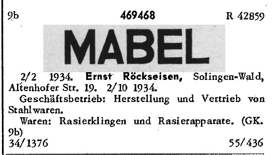 Торговая марка MABEL зарегистрирована в 1934 году на имя Ernst Rockseisen