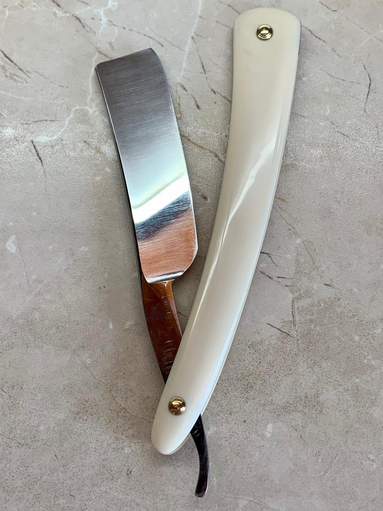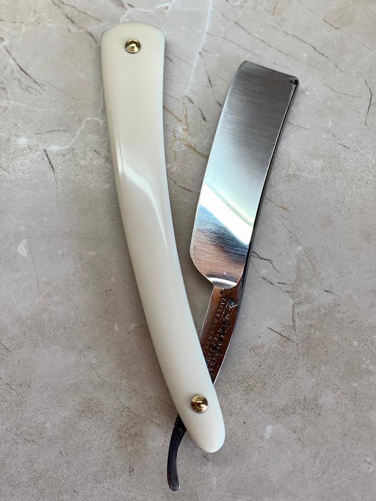Приобретена мной на форуме несколько лет назад, в ходе эксплуатации поменял треснувшую ручку под зуб мамонта + клинышек олово. Инструмент только что вернулся с заточки, мной не использовался.