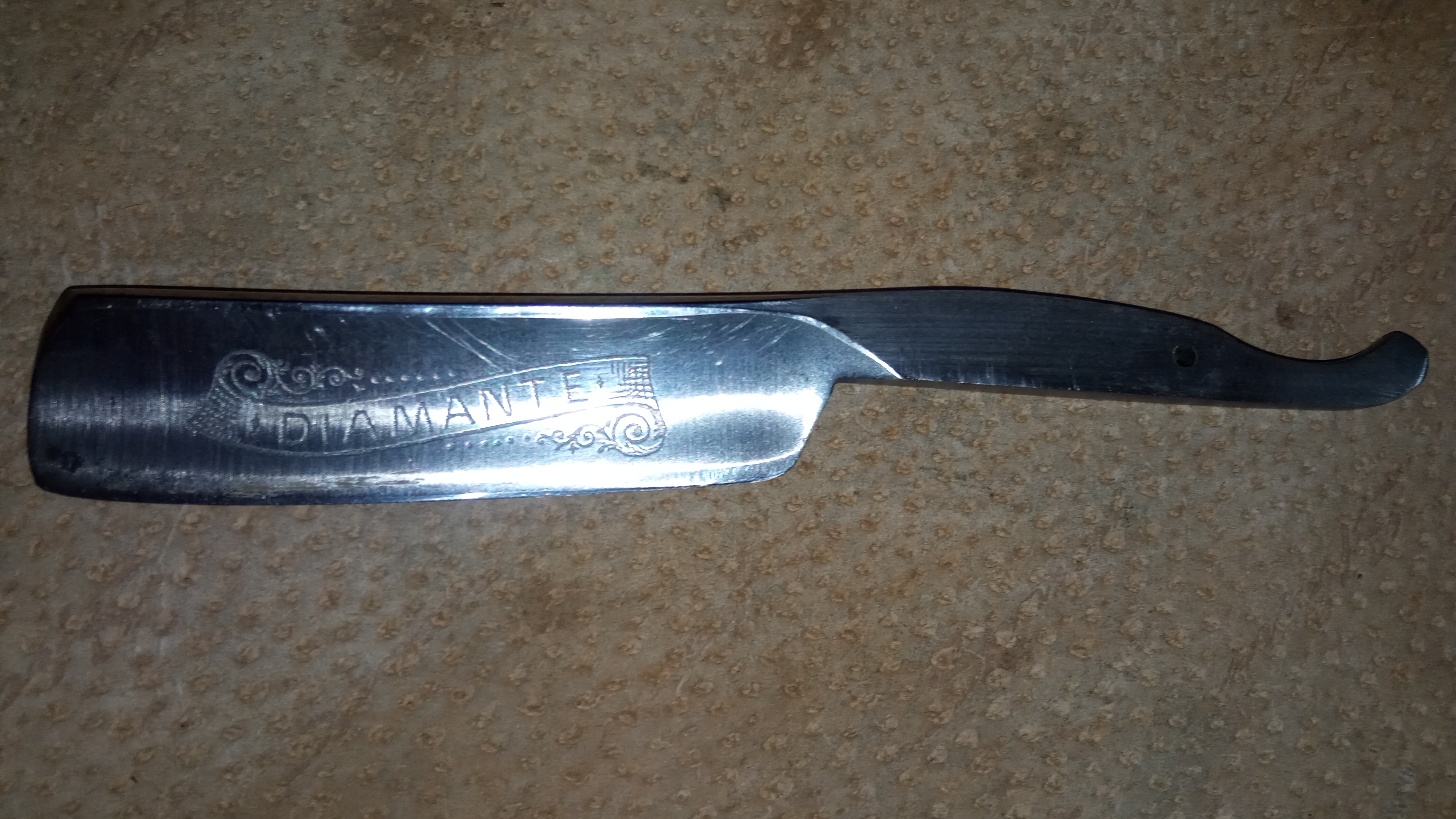 Приобрел вот такой клинок. на полотне глубокая гравировка а клейм нет.насечек нет,отверстие для пина круглое.Может кто подскажет что за бритва заранее благодарю за любые подсказки