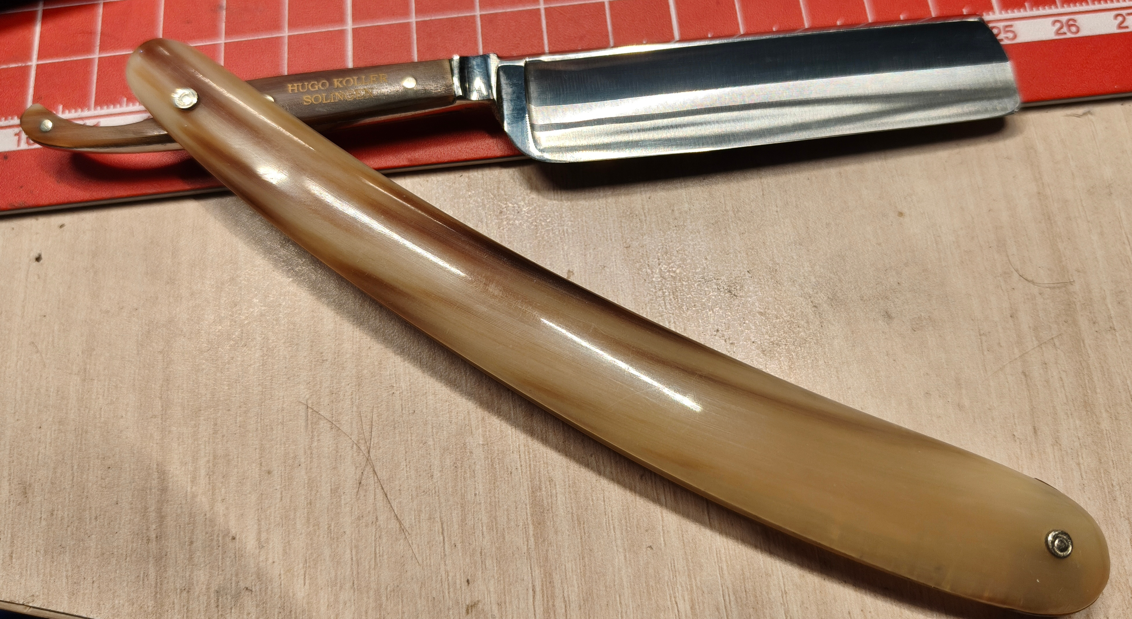 Продаётся от Олег БритваАнтикварная опасная бритва Hugo Koeller: 5/8, 1/1, углер.сталь, рукоять - буйволиный рог.