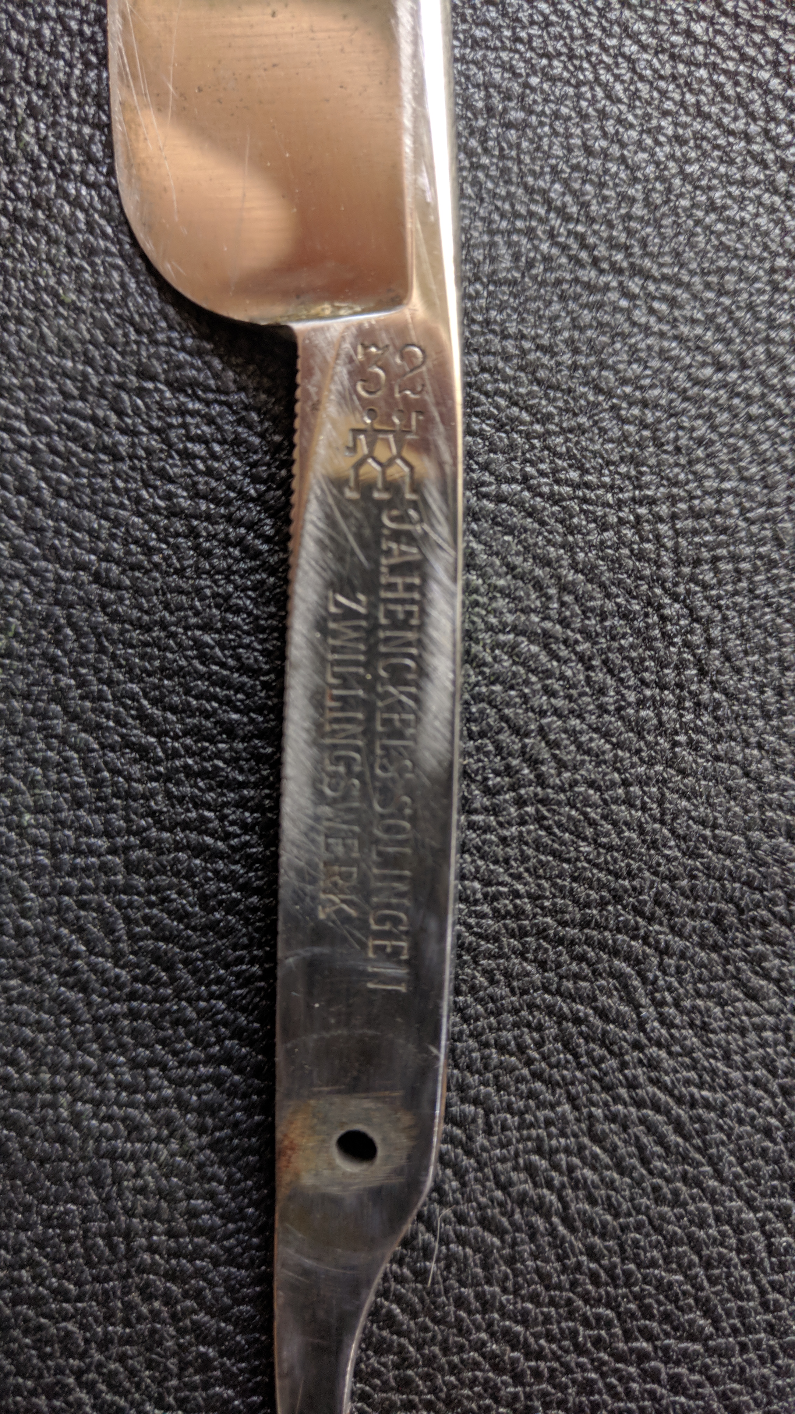 На forum der rasur нашел изображения 33-й модели, но там везде более ранняя, как мне кажется, надпись J.A.HENCKELS SOLINGEN.