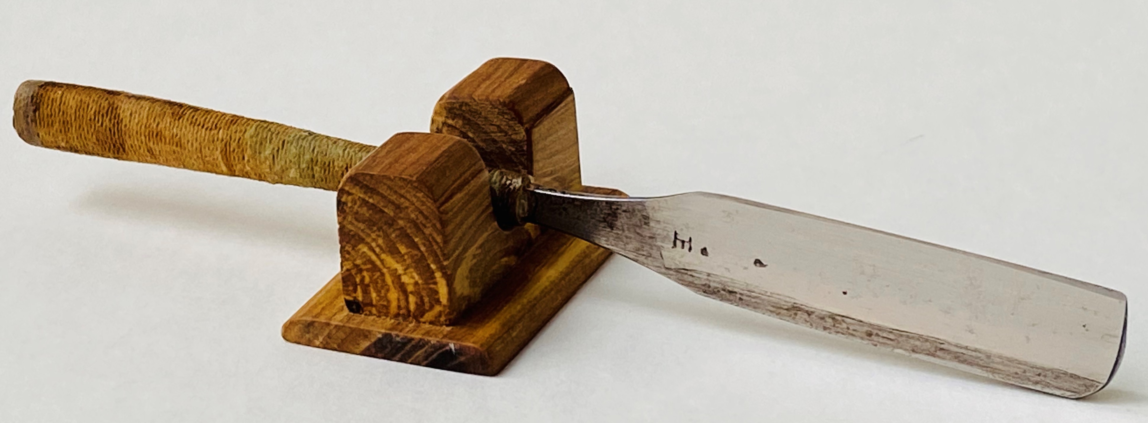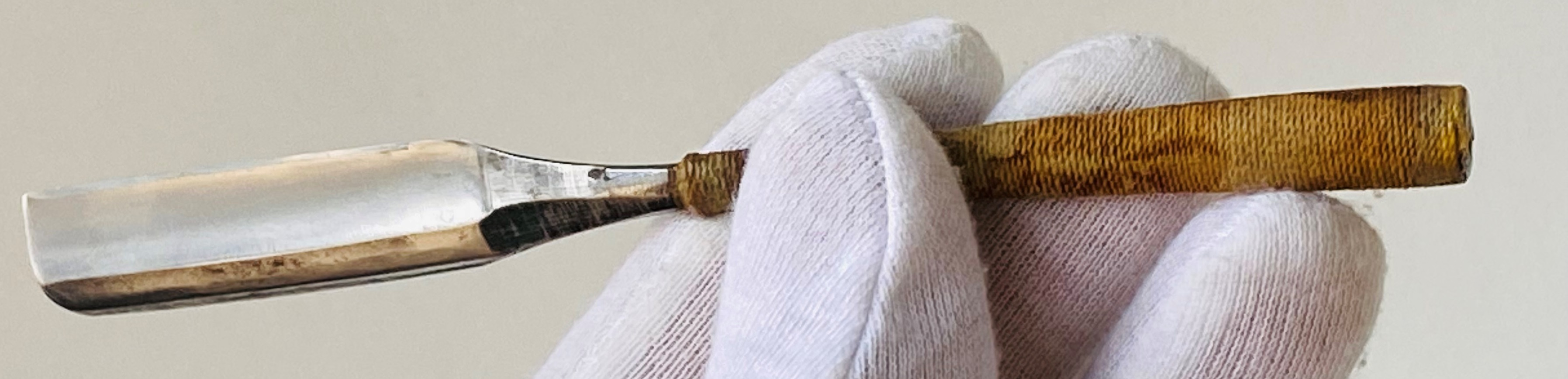 Бритва достаточно старая,но находится в очень хорошем состоянии.Создана по классической японской технологии,в виде сварки из двух частей.Красивая и равномерная патина на обушке и в районе пятки.Кромочка почти равномерна по всей длине. Оригинальная японская оплётка хвостовика бритвы.Бритва достаточно миниатюрная, ближе к среднему размеру. Опытному пользователю будет удобно не только бриться, но и для коррекции усов и бороды.