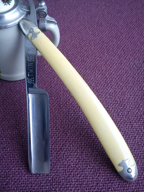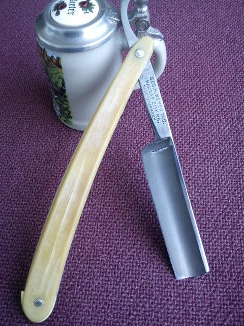 И еще бритва этой фирмы...Юбелейная.По всему видно концы лезвий обломились...кто-то их подрезал аккуратно...укоротил...Обидно Re: GEO.H.WEYER. KANSAS CITY MO.Rumata:Классные бритвы, только у тебя на всех снимках одна и та же композиция (фирменный знак с кружкой?), поэтому не очень просто масштаб на глаз определить, да и пятое по счету фото тяготит имхо... Кружка у тебя 0,3л или 0,5л? Это я так, к слову...