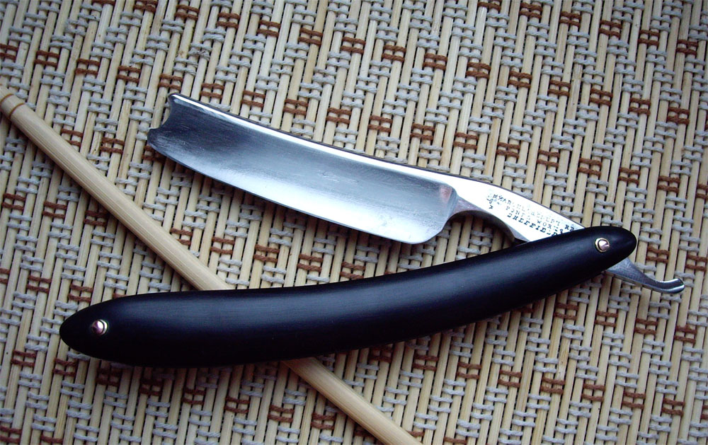 Добавлено спустя 1 минуту 50 секунд: Ну стиль то я не менял, просто рог пришлось на эбонит заменить. Челябинские мужики настолько суровы, что правят бритву не на ремне, а на роже.