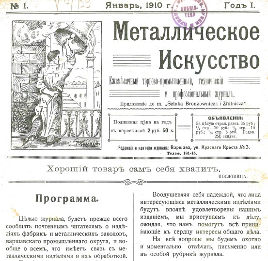 YOUTUBE Олег Бритва INSTAGRAM Олег Бритва Re: G.BOROWSKIНачиная с января 1910 года в Варшаве начал выходить торгово-промышленный журнал "Металлическое Искусство" (на русском языке) . Целью журнала было сообщать читателям об изделиях фабрик и металлических заводов варшавского промышленного округа.