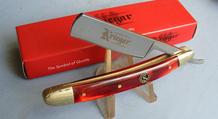 http://cgi.ebay.com/ws/eBayISAPI.dll?Vi ... 645wt_1139" onclick="window.open(this.href);return false;Beautiful Showcase quality straight razor! This is the heaviest straight razor I have ever seen. I have been selling straight razors for years and this one takes the cake! Only two words describe the quality and craftsmanship incorporated into this razor...BEAUTY & LUSTER! This straight razor has a steel insert between the handles and this insert keeps the handles from bending together and being flimsy like most straight razors. The added weight aids in a smoother shave and the overall quality is beyond any other razor that you may have! This razor was well thought out and brass fasteners keep this razor tight! All finished out and polished and no rough edges!