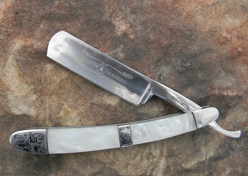 http://cgi.ebay.com/ws/eBayISAPI.dll?Vi ... 645wt_1139" onclick="window.open(this.href);return false;Beautiful Showcase quality straight razor! This is the heaviest straight razor I have ever seen. I have been selling straight razors for years and this one takes the cake! Only two words describe the quality and craftsmanship incorporated into this razor...BEAUTY & LUSTER! This straight razor has a steel insert between the handles and this insert keeps the handles from bending together and being flimsy like most straight razors. The added weight aids in a smoother shave and the overall quality is beyond any other razor that you may have! This razor was well thought out and brass fasteners keep this razor tight! All finished out and polished and no rough edges!