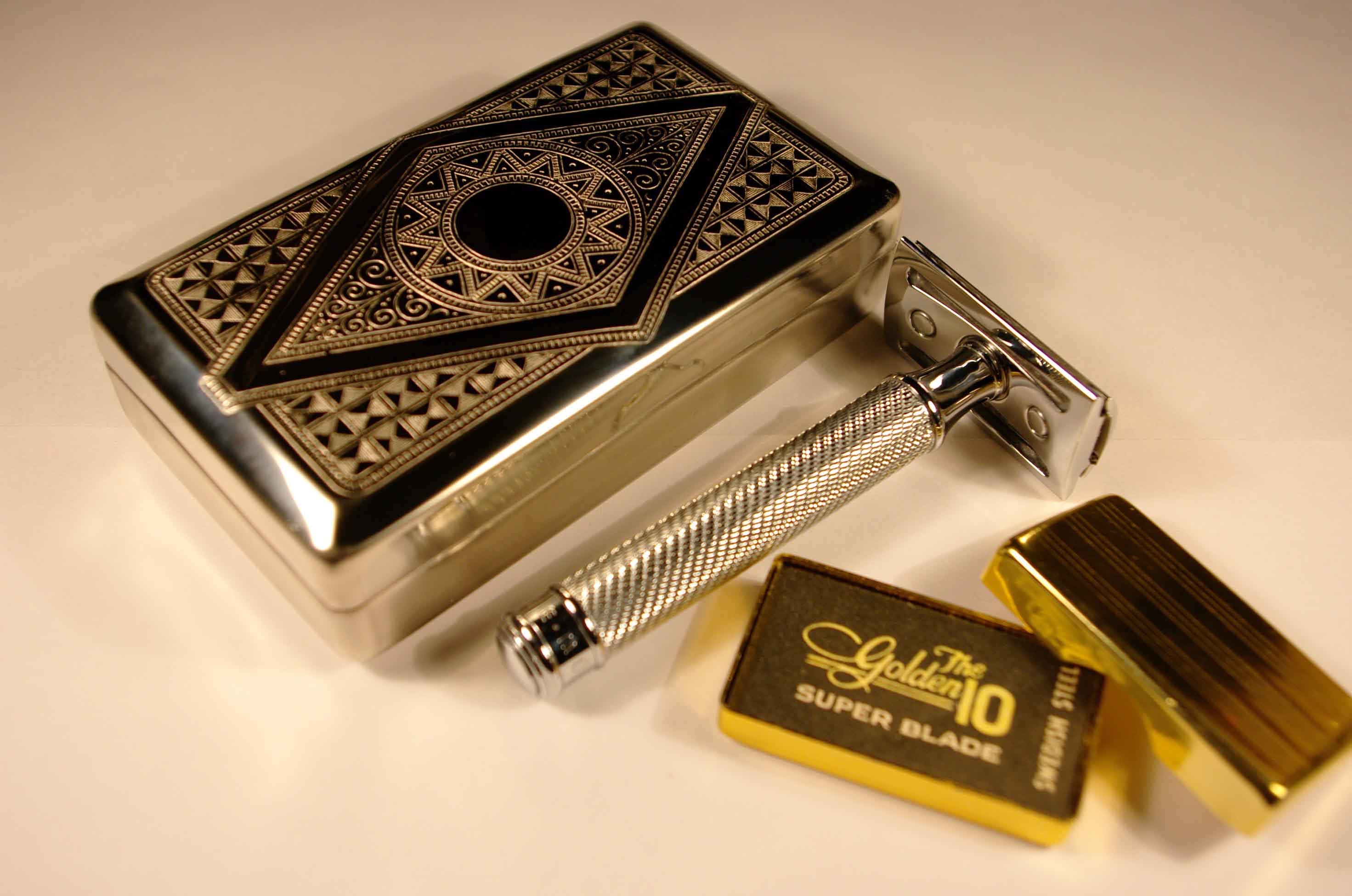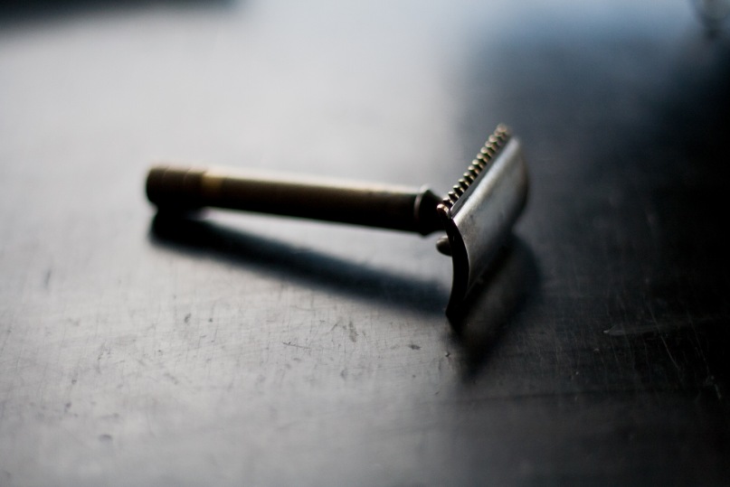 т образная бритва и виски=чистое бритье(это как с женщиной:чем больше пьешь,тем она красивее)