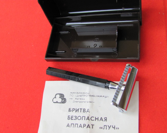 Re: Станки производства СССР и постсоветского пространства.Неожиданно сегодня пополнилась моя коллекция. Бритва безопасная аппарат "ЛУЧ", цена 2 рубля СССР. Косой срез