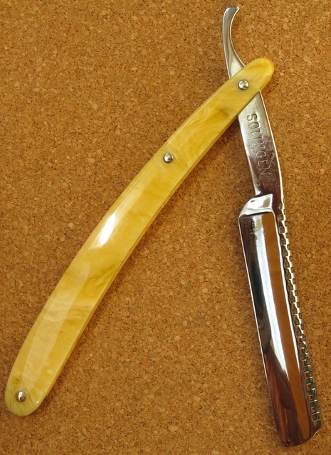 бритва, как для британки - довольно маленькая и изящная, холлоу граунд . Произведена замена ручки, наточена. Ширина полотна примерно - 14мм., обушок - 4мм. Цена - 50евро с пересылкой. продано