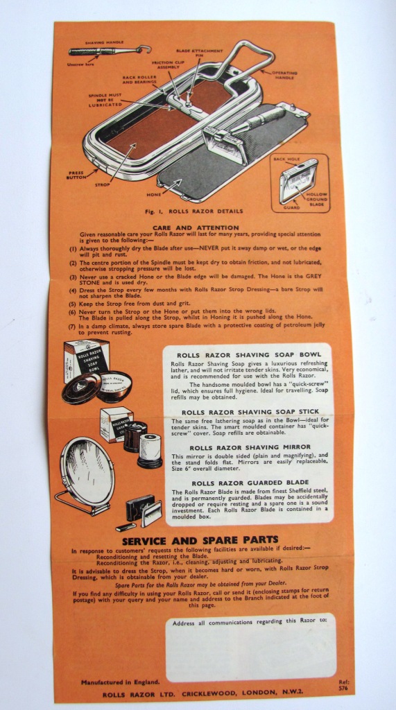Продам Rolls Razor , Made in EnglandПредлагаю на продажу приятную и в своем роде уникальную бритву компании Rolls Razor. Данный предмет включает в себя : бритву, заточной камень, доводочный ремень и держатель в одном красивом футляре. В комплекте есть подробная инструкция пользования, оригинальная коробка. Прибор в отличном состоянии, готов применяться по прямому назначению, ну и в коллекцию соответственно. Клин сделан из лучшей Шеффилдской стали, следы времени специально не убирал, т.к. лучше это сделает или нет новый хозяин. При правильной эксплуатации, данной бритвой смогут пользоваться Ваши внуки.