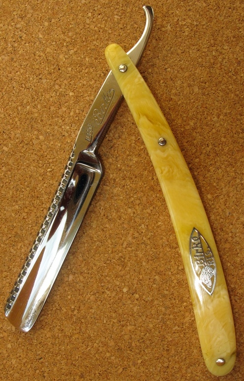 бритва, как для британки - довольно маленькая и изящная, холлоу граунд . Произведена замена ручки, наточена. Ширина полотна примерно - 14мм., обушок - 4мм. Цена - 50евро с пересылкой. продано