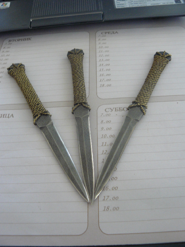 Re: Наши ножиСтилетные кинжалы скрытого ношения, дамаск, оплетка рукоятки медной проволкой