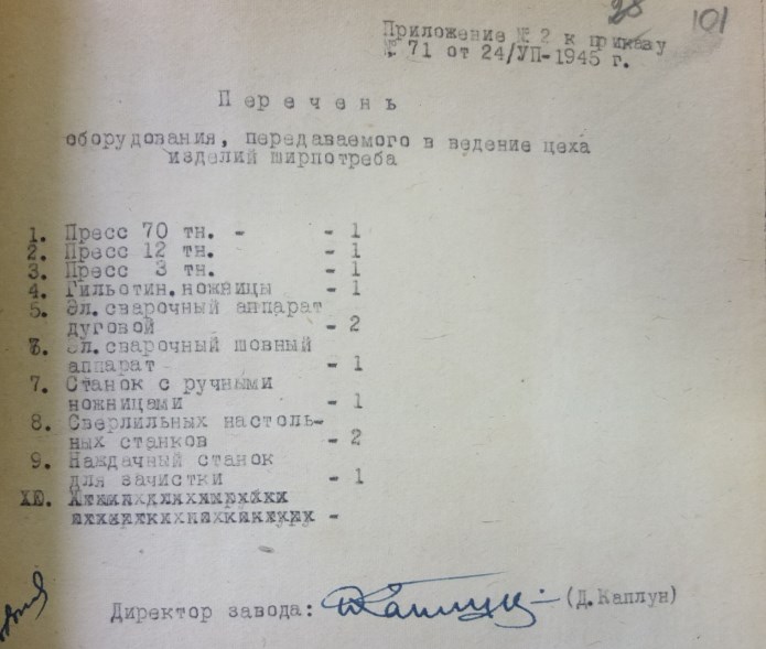 Как видно из документа, в июле месяце производство всей продукции остановилось. Завод расформировали, все станки распределили и отправили по разным РПЗ страны. Кому-то достался и молот Аякс.... а в 1947 году завод возродили вновь, но на другой территории и с другими станками. НКСМ МРПЗЕще немного истории