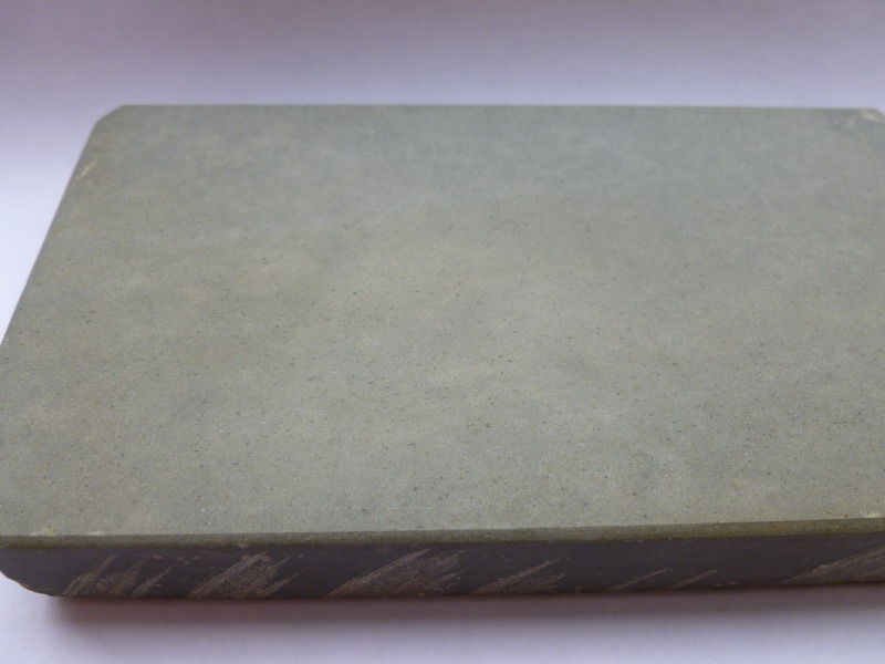 Камень суперфинишный - т.е. однозначно меньше 10000 грит. По японским градациям твердость 5 из 5, т.е. камень крайне твердый близок к стеклу по твердости. Работать достаточно медленно, но уверенно. В смысле медленнее чем хотелось бы но быстрее чем сланец гуанси (китаейский). Склонен к наклепу, в смысле если работать без нагуры то гритность уменьшается, но и производительность тоже.