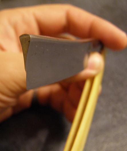 Re: Вопрос/опрос/шмопрос (про бритвы)Свежее поступление, "именитость" производителя под вопросом, но в целом бритва хорошая, и состояние достойное, но есть одно "НО": в начале лезвия имеется замятие - постарался передать на фото. Исправить можно: или обрезать нафиг 2-3 мм, либо "термообработка". В любом случае я этим заниматься точно не буду.