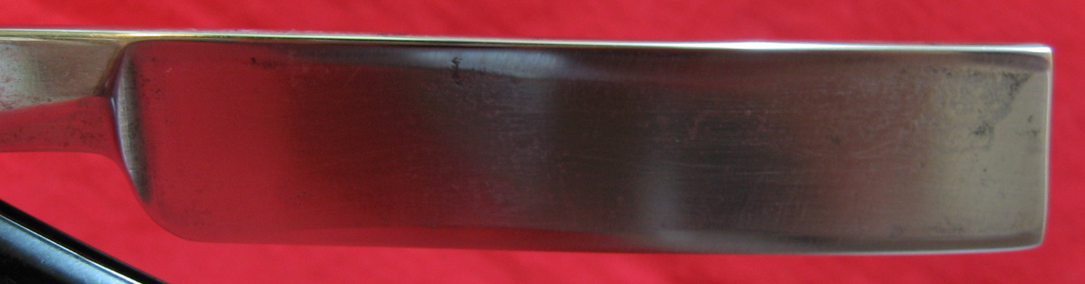 Бритва без сколов, трещин и пр. дефектов. Местами имеются в прошлом - места окисления, под опр. углами на полотне не глубокие царапины.Моя субъективная оценка состояния - 8,5-9/10