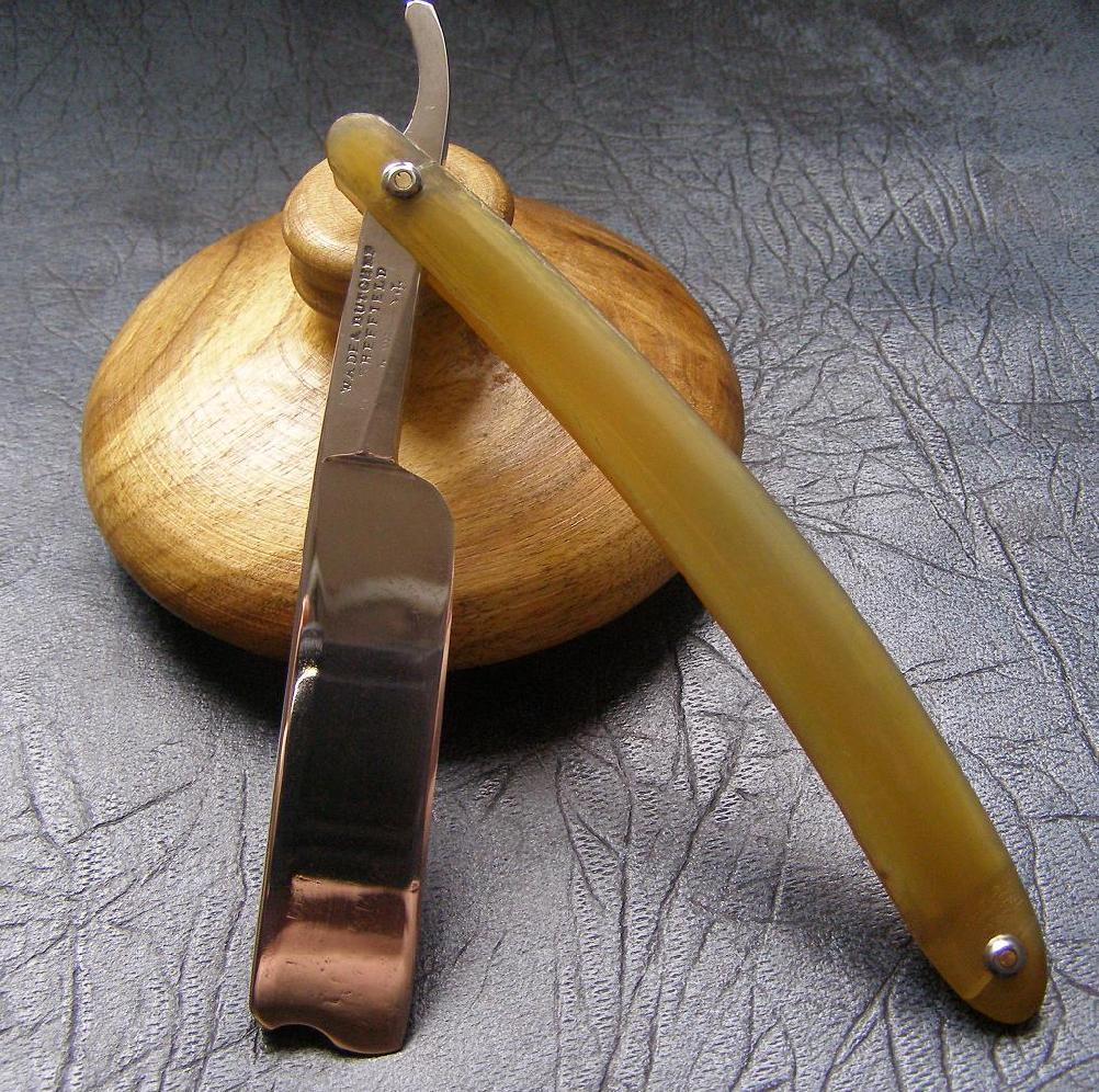 Spoiler Show По производителю на форуме информация есть. Бритва восстановлена и заточена. Ширина лезвия 7/8, обушок - 5,1мм Оправа и пины оригинальные (оправа - рог). Цена: 110 евро (доставка за мой счёт, оплата - "Приватбанк", "Контакт", "Золотая корона", "Western Union") Spoiler Show