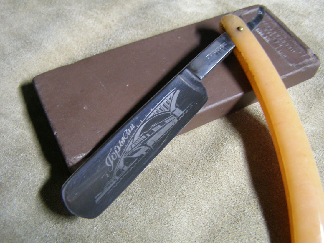 Бритва немного почищена, заменена ручка, заточена. Продана.