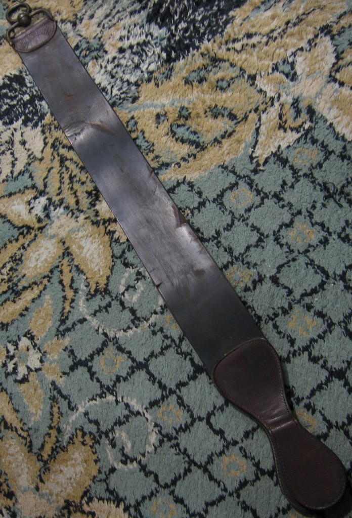 Re: Ремни для правкиВ руки попал антикварный ремень с английскими надписями, в очень даже приличном состоянии, одна сторона "для заточки", другая "из лошади", обе стороны гладкие, ремень гнётся хорошо, ровный, не пересушенный.