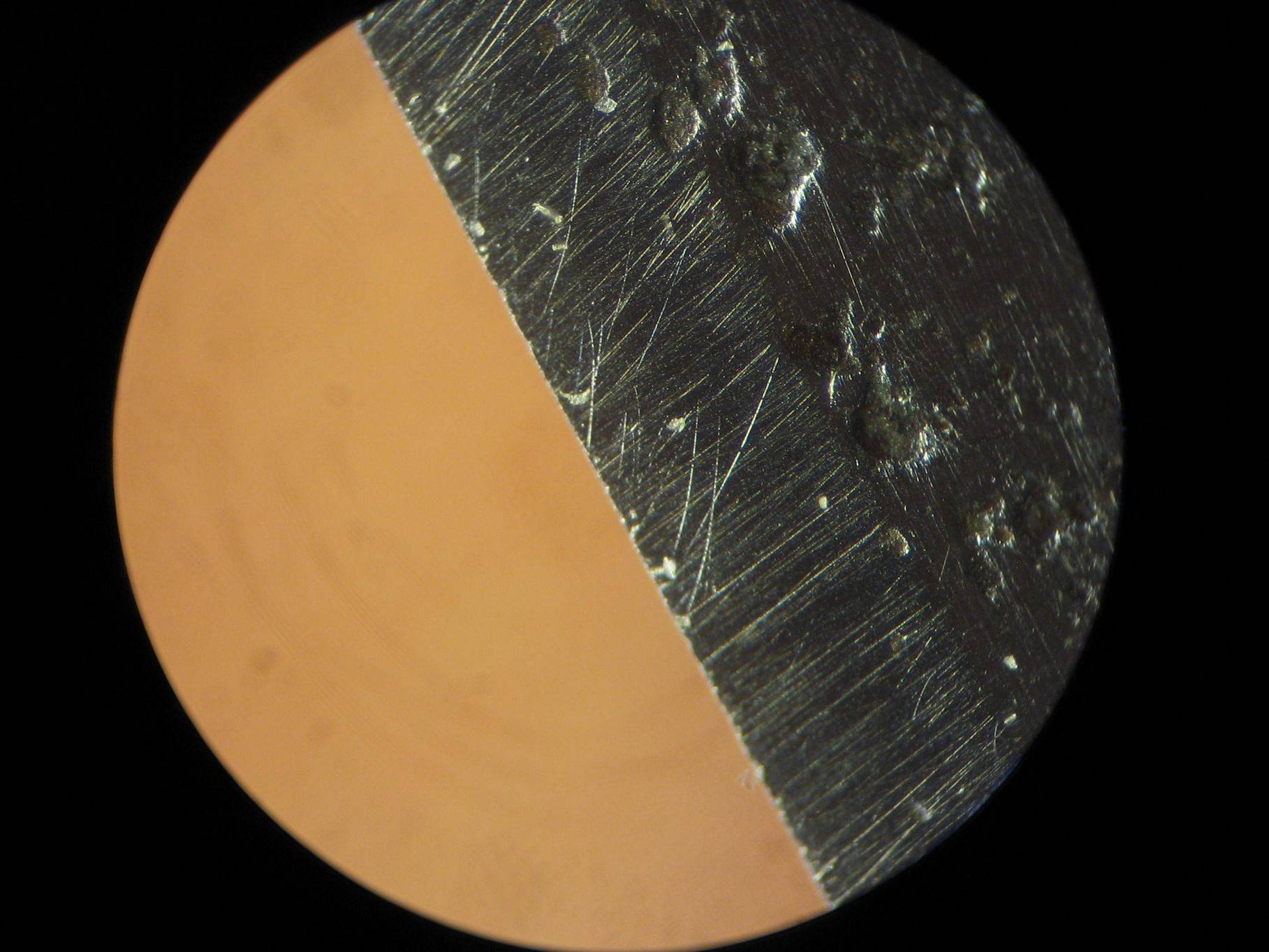 Re: Макроснимки от КаяПока выложу эксперимент на уже не помню какой бритве, видимые круги на бритве - это результат коррозии. Увеличение Х120 (фотографии увеличиваются при нажатии на них). Пытался снимать под одним и тем же углом к свету. Показываю в порядке обработки РК: