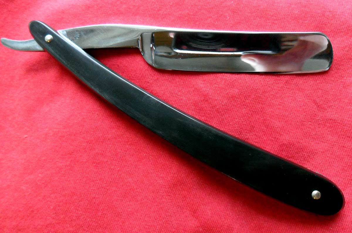 Надпись на полотне: WHOLE HOLLOW GROUND Ручка - эбонит. Очень приятная бритва - хорошо точится, притом хорошо держит заточку - садится после бритья весьма незначительно. 4 дня сравнивал в бритье с парой своих любимых широких бритв. "Старички" победили только в силу привычки, т.к. в бритье я разницы не ощутил - просто прекрасно. Естесственно, заточена и полностью готова к бритью. Ширина полотна 20 мм, толщина в обухе 5,5 мм.