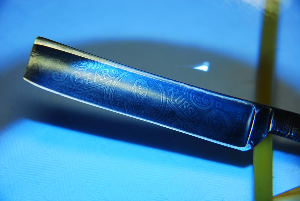 Вывод: бритва просто была в хорошем состоянии , следов полировки на ней нет , соответственно её никто не востанавливал - липа всё это . А пятна на полотне с зачатками коррозии говорят сами за себя .