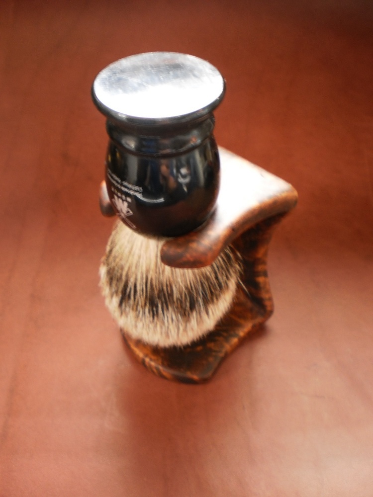 Re: Сваял подставку. Зацените)))Подставка для помазка нужна, а для помазка из барсука просто необходима,этот помазок у меня больше десяти лет,думаю благодаря подставке.Не важно какая подставка,лишь бы помазок сох правильно.Эту можно использовать ещё и как колокольчик (позвать жену спинку потереть,или ещё чего