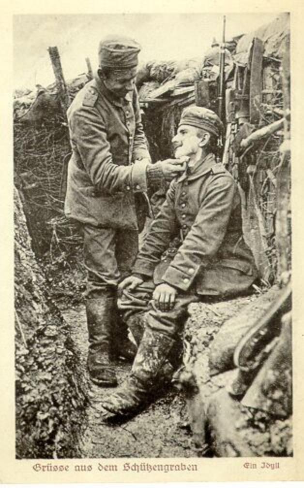 Re: Опасная бритва в искусстве ( картины, рисунки, фото, татDie deutschen Soldaten rasieren sich - Немецкие солдаты бреются