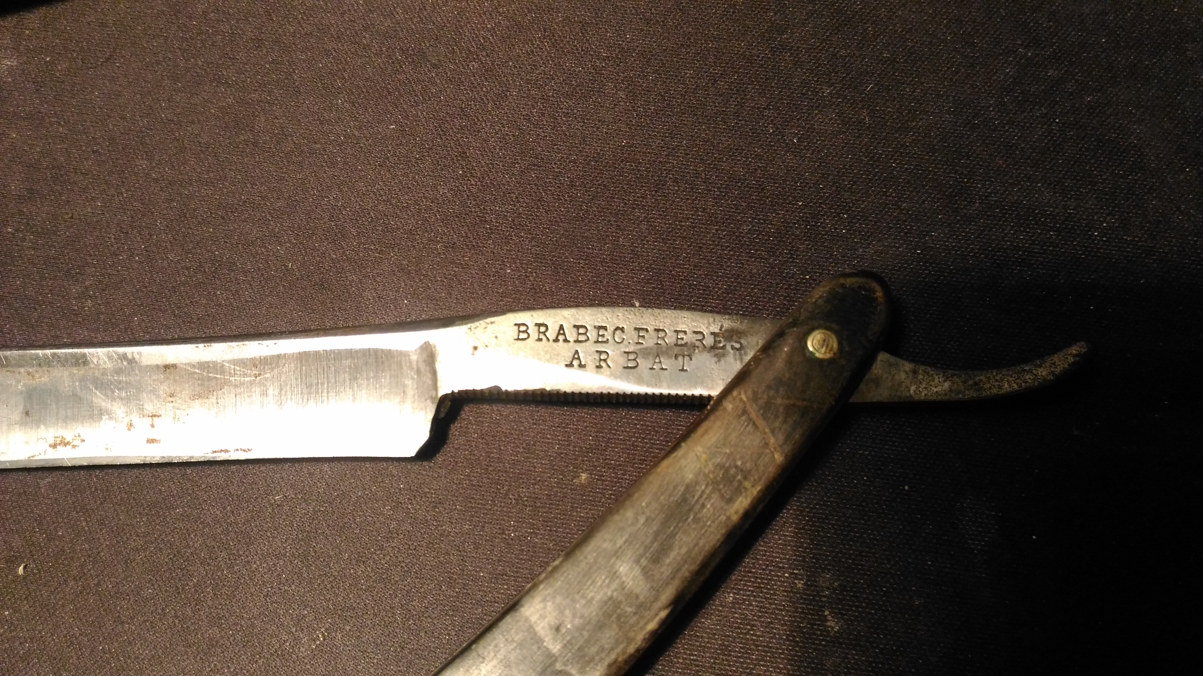 Нашел на развалах Куреневки вот такую бритву. Судя по надписям на клинке родом из Франции. Надпись MEDAILLER D'OR встречалась на бритвах Le Grelot - модель Le Grelot "Hospital Medaille D'or 11". И где-то я встречал это название BRABEC но найти нигде не могу. Может кто, что либо знает? С уважением.
