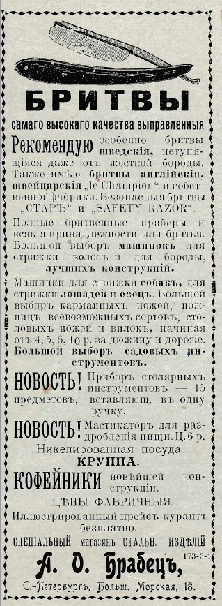 ED. J. Brabec, на пенале: Леонарди, пассаж 53 (Петербург, Невский Пассаж, 53, владелец бизнеса Спенглер Луиза Яковлевна) Spoiler Show Помогите опознать бритвыа, что значит Арбат? Там был магазин?