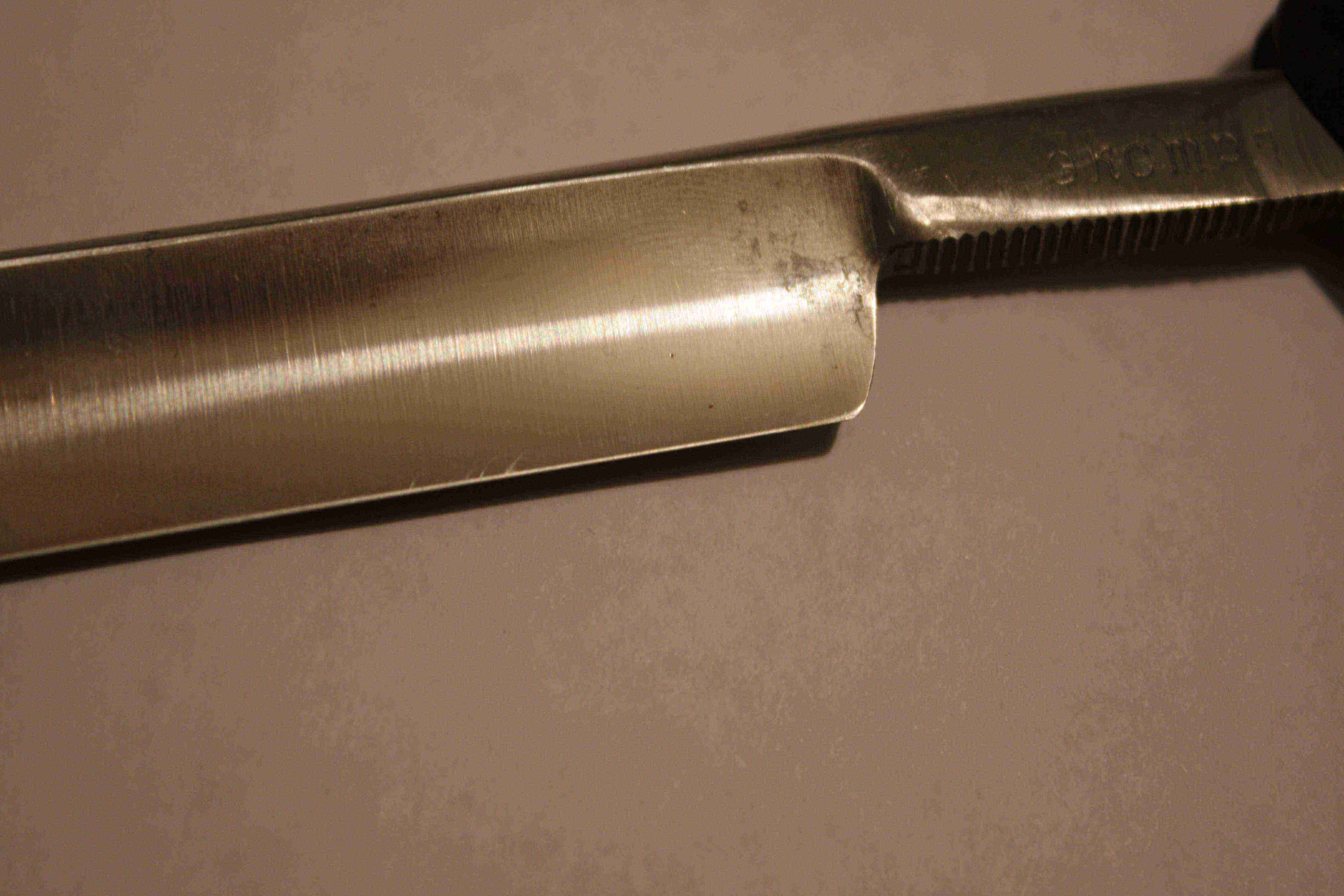 Только сегодня забрал с заточки в Марьино 6/8" бритву "Ока", Труд Вача, 1956 г. Бритва интересна в первую очередь тем, что несмотря на год выпуска, ею никогда не пользовались. Продавалась завернутой в высохший заводской промасленный пергамент.