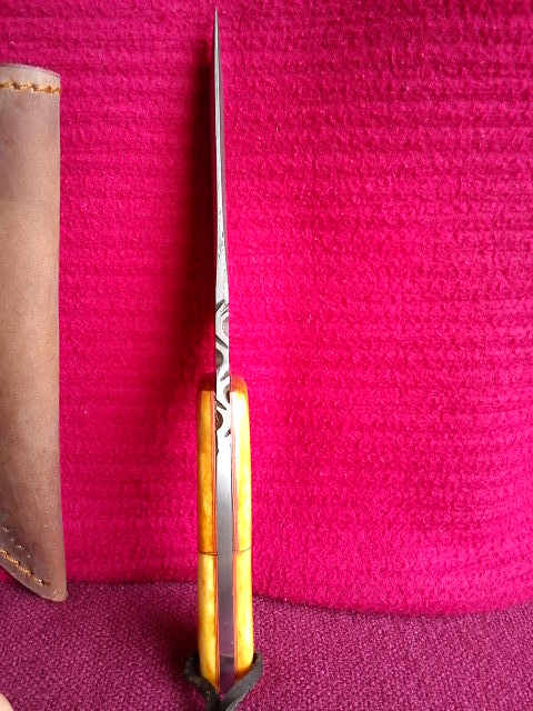 Re: Продам нож.Дамасская сталь.Продам нож.Новый.Общая длина 22,5 см.Длина лезвия 11,5 см,длина ручки 11 см.Вес 260 грамм.Ручка из рога буйвола и еще чего-то(lime honey horn)..не могу перевести