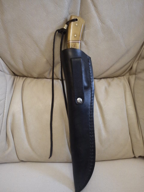 Spoiler Show Продам охтничий нож.Новый.Размеры ...общая длина 23,5 см,длина лезвия 11 см.Вес 365 грамм.Чехол из коровьей шкуры.Ручка верблюд+буйвол.Качество отличное.Цена 45 евро(почтовые расходы включены). Spoiler Show