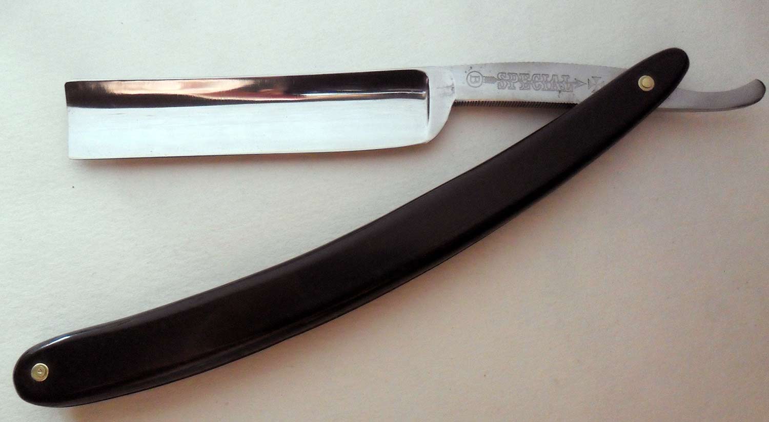 Надпись на обратной стороне эрля: SPECIAL Сведения о производителе: http://britva.ru/forum/viewtopic.php?f=28&t=1663" onclick="window.open(this.href);return false; Ручка - эбонит. Ширина бритвы 16,5 мм, толщина обуха 4,5 мм. Заточена и полностью готова к бритью.