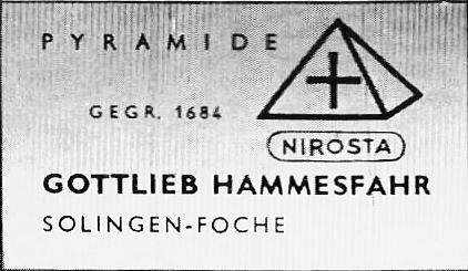 Re: ECHT ENGL SILBERSTE... 75 JAHRE GARANTIE ESFAHR... SOLINЭто фирма Gottlieb Hammesfahr & Co. AG, Nirosta-Werk. С 1939 по 1970 год она находилась Solingen-Foche, Focher Strasse 60.