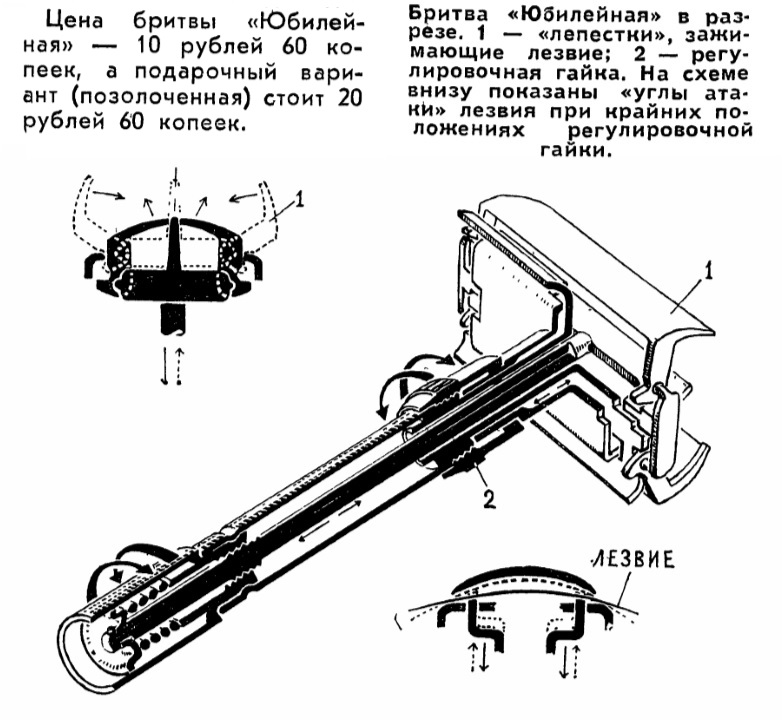 Вот вам ссылка: http://wiki.badgerandblade.com/US_Gille ... nformation" onclick="window.open(this.href);return false; А по первой вашей ссылке это весьма редкий и дорого продающийся на ибэе товарищ, имя которому *Toggle*. А по второй вашей ссылке товарищ тоже известный, только имя ему не Слим, а ФэтБой. Разница четко просматривается в толщине диаметра ручки и высоте регулировочного кольца. Re: Юбилейная бритва в позолоте.Извинюсь за оффтоп, но ещё один друг из 60х, копия штатовской вещи и родом из Ленинграда, судя по картинке.