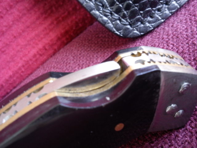 Re: Продам складной нож.Продам складной нож.Новый.Общая длина 17,75 см.Лезвия 7,25 см,ручка 10,5.Вес 180 грамм.Ручка из рога быка.Есть фиксатор лезвия.Кожаный чехол.Цена 30 евро(почта включена).