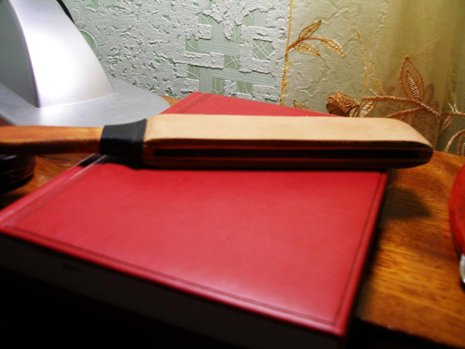 Собственноручного изготовления. Дерево липа(очень эластичное, прогиб работает) пропитано спецсредством. Общая длина 240мм, ширина 35мм, длина рабочей части 150мм, толщина кожи 4мм. Полностью готова к эксплуатации по назначению. ПРОДАНА правка Show