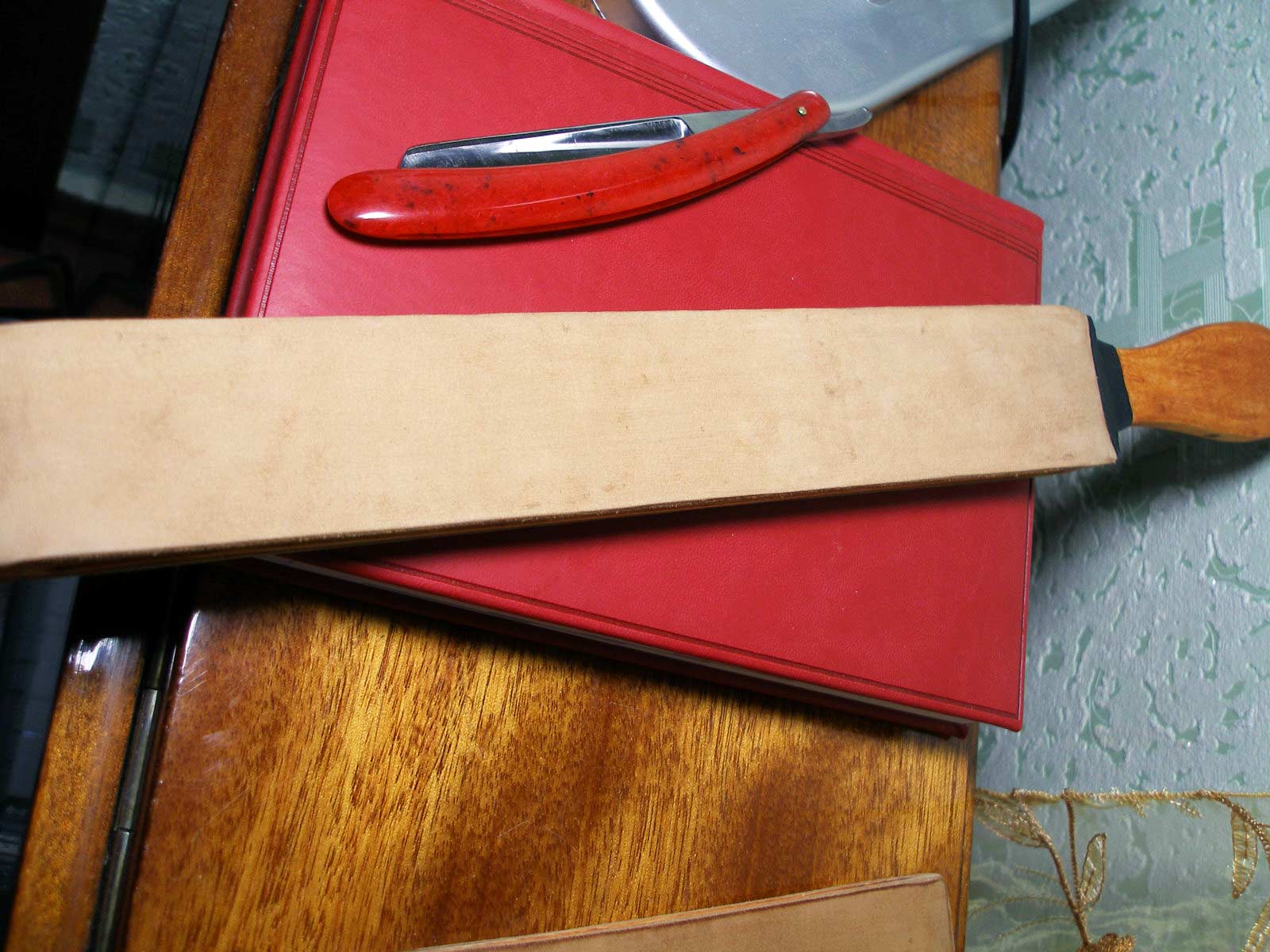 Липа. Длина общая 380мм, рабочая поверхность 275мм, ширина 43мм, кожа 4мм. ПРОДАНА правка+ Show